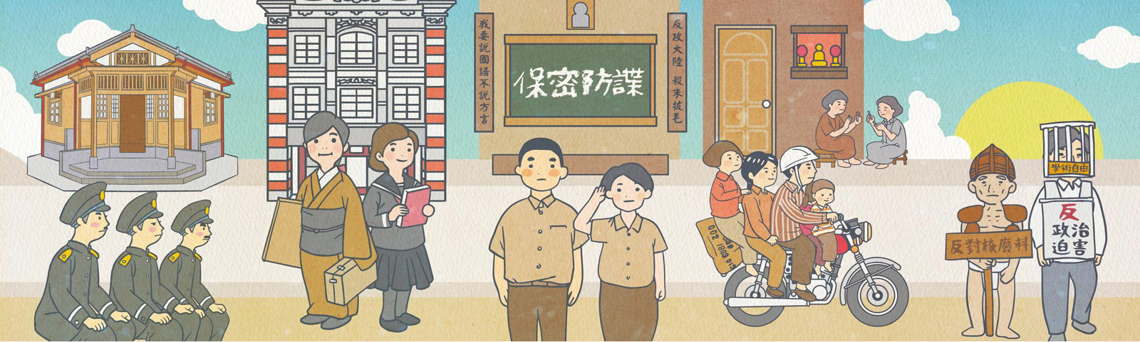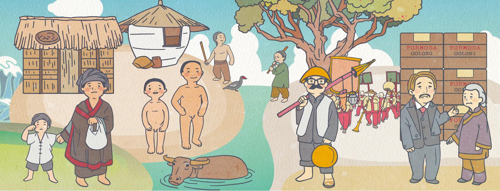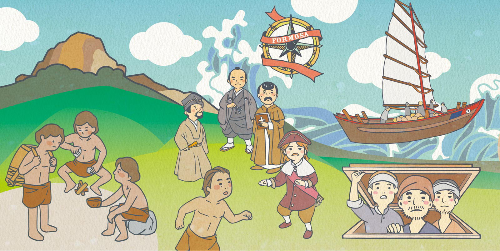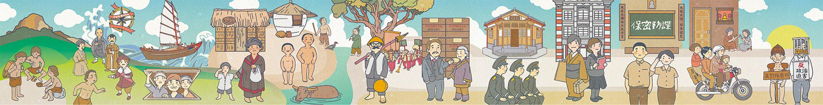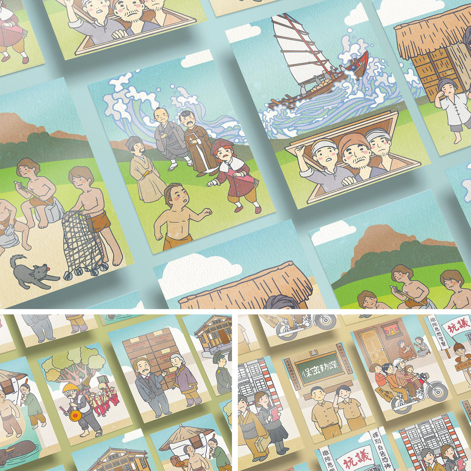 以臺灣歷史博物館常設展為故事線,設計臺灣的故事插圖以及相關背景的教育推廣品。